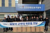 어웨이크뉴스 오경하 기자 | 파주시 탄현면 이장협의회는 2월 4일과 6일 양일간 설 명절을 맞아 국토방위에 헌신하고 있는 육군 제9보병사단 등 4개 군부대에 위문품을 전달하고 국군장병들에게 감사의 마음을 전했다. 이날 전달식에서는 유재근 탄현면 이장협의회장을 비롯한 각 리 이장 20여 명이 참석한 가운데 음료 200상자의 위문품을 전달했다. 유재근 탄현면 이장협의회장은 “설 연휴에도 고향에 가지 못하고 국방의 의무를 다하는 국군장병들에게 조금이라도 위로가 됐으면 좋겠다”라며 “앞으로도 지속적인 유대관계를 위하여 노력하겠다”라고 말했다. 이태희 탄현면장은 “접경 지역 주민과 장병들의 한 사람 한 사람의 헌신적인 노력으로 주민들이 안심하고 일상생활을 할 수 있다”라며 “이번 설 명절을 맞이해 감사한 마음을 전할 수 있게 되어 기쁘다”라며 격려를 아끼지 않았다. 탄현면 이장협의회는 매년 설과 추석 명절에 군부대를 찾아 정기적으로 위문품을 전달하며 감사의 마음을 전하고 있다.
