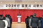 어웨이크뉴스 오경하 기자 | 김포시가 2일 오전 10시, 시청 본관 3층 대회의실에서 ‘2026년도 시무식’을 열고 붉은 말 병오년(丙午年) 새해의 힘찬 출발을 알렸다. 이날 시무식에는 김병수 김포시장을 비롯해 실·국·소장, 부서장 등 간부 공직자 100여 명이 참석해 새해 시정 운영 방향을 공유하고, 시민 중심의 시정 추진과 새로운 도약을 향한 결의를 다졌다. 행사는 국민의례를 시작으로 공무원 헌장 낭독, 신년사 순으로 차분하고 엄숙하게 진행됐으며, 참석자들은 시무식을 통해 공직자로서의 사명과 책임을 다시 한 번 되새기는 시간을 가졌다. 김병수 김포시장은 신년사에서 “붉은 말의 해는 뜨거운 열정과 강한 추진력을 상징한다”며 “올해는 이 기운을 받아 ‘시민의 상상이 현실이 되는 김포’를 시민 한 분 한 분이 실제로 느낄 수 있도록 시정 역량을 집중해 나가겠다”고 밝혔다. 아울러 “속도감 있는 행정과 책임 있는 실천으로 김포의 미래 경쟁력을 더욱 높여 나가겠다”고 덧붙였다. 한편, 시무식을 마친 뒤 참석자들은 서로 새해 인사를 나누며 올 한 해 시정 운영에 대한 각오를 공유하는 시간을 가졌으며, 시민