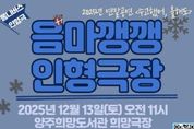 어웨이크뉴스 오경하 기자 | 양주희망도서관이 오는 13일 도서관 내 희망극장에서 국악 사물놀이를 기반으로 한 인형극 '음마깽깽 인형극장'을 운영한다. '음마깽깽 인형극장'은 연말을 맞아 한 해를 마무리 할 수 있는 주제로 ‘수고했어, 올해도’로 기획됐다. 지난달 29일 약 80여 명의 관객과 함께한 천 개의 캔들 음악회에 이은 두 번째 시간이다. 특히 이번 공연은 경기아트센터의 “찾아가는 문화복지공연” 사업으로 지역 시민들에게 수준 높은 문화예술 향유의 기회를 제공하고자 마련됐다. 본 공연을 펼쳐 줄 ‘음마깽깽 연희극장’팀은 국가중요무형문화재로 지정된 전통 인형극인 ‘덜미’를 중심으로 국악과 인형극을 접목하여, 국내 유일한 남사당놀이 극을 진행하는 팀이다. 이번 공연은 3가지 막으로 구성된 옴니버스 형식의 인형극으로 펼쳐진다. 관람 신청은 도서관 누리집에서 선착순으로 가능하며, 양주시민이면 누구나 무료로 관람할 수 있다. 도서관 관계자는 “연말을 맞아 도서관에서 함께하는 공연을 통해 올해 고생한 서로를 위로하며 한 해를 잘 마무리하는 시간이 되길 기대한다”고 전했다.