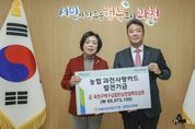 어웨이크뉴스 오경하 기자 | 과천시는 19일 NH농협은행 과천시지부로부터 제휴카드 사용으로 적립된 기금 6천 9백여만 원을 전달받았다고 밝혔다. 이날 전달식은 과천시청 집무실에서 열렸으며, 신계용 과천시장과 이장순 NH농협은행 과천시지부장, 노준형 NH농협은행 과천시청 출장소장 등이 참석했다. 과천시는 NH농협은행과 협약을 맺고 법인카드, 보조금카드, 공무원 복지카드 등의 사용액 중 일정 비율(0.1~1.1%)을 포인트로 적립해 매년 기금으로 전달받고 있다. 이번 기금을 포함해 현재까지 과천시에 전달된 누적 기금은 약 8억 3천만 원에 이른다. 해당 재원은 시 세입으로 편성되어 공공서비스 확대와 복지사업 등 시민 삶의 질 향상과 지역 발전을 위한 사업에 활용되고 있다. 시 관계자는 “지역사회 발전을 위해 매년 기금을 전달해 준 NH농협은행 과천시지부에 감사드린다”라며 적립된 기금은 “시민이 체감할 수 있는 정책과 지속가능한 도시 발전을 위한 다양한 시정 사업에 소중히 활용하겠다”라고 말했다.