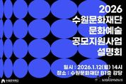 어웨이크뉴스 오경하 기자 | 수원문화재단은 오는 9일부터 지역 문화예술인 및 단체를 위한 2026년도 수원 문화예술지원사업 공모를 시작한다. 이번 공모지원사업은 지역 문화예술인의 자율적이고 다양한 문화예술 창작‧활동을 지원하기 위해 마련됐다. ▲문화예술 창작지원사업 ▲유망예술가 지원사업 ▲경기예술활동 지원사업 ▲형형색색 문화예술지원사업 등 총 4개 사업을 진행한다. 이번 공모도 전년도와 동일하게 ▲지원분야 간소화 및 일원화 ▲청년예술인 우대(유망예술가 지원사업) ▲원로예술인 및 장애예술인 대상 우선할당제(형형색색 문화예술지원사업)가 적용된다. 먼저 ‘문화예술 창작지원사업’은 지역 전문예술인 및 단체의 창작활동 활성화를 위한 사업이다. 지원 분야는 2025년부터 기존 4개 분야에서 공연/시각/문학 3개 분야로 변경됐으며, 미발표 신작에 한하여 신청이 가능하다. 사업비는 총 8,000만원으로 건당 지원금은 분야별로 상이하다. ‘유망예술가 지원사업’은 활동경력 5년 이내의 지역 신진예술가 및 단체의 창작활동 활성화를 위한 사업이다. 공연/시각 총 2개 분야의 창작 및 실연을 지원한다. 올해도 청년예술인(