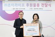어웨이크뉴스 오경하 기자 | 금천구는 ㈜죠이라이프가 지역 내 취약계층에게 4,000만 원 상당 건강식품을 후원했다고 밝혔다. 이와 관련 지난 20일 오전 금천구청 소회의실에서 후원물품 전달식이 진행됐다. 전달식에서는 유성훈 금천구청장과 정난희 ㈜죠이라이프 대표가 참석해 관내 취약계층 지원에 뜻을 모았다. 후원받은 건강식품은 일상적인 건강 관리에 어려움을 겪는 주민들의 건강한 생활 유지를 돕기 위해 관내 취약계층에게 전달될 예정이라고 구는 설명했다. ㈜죠이라이프는 금천구 관내에 위치한 화장품, 건강식품 전문 생산 기업이다. 특히 장애인 고용에 선도적인 역할을 하고 있는 장애인기업으로 사회적 가치 실현에 앞장서고 있다. 지난해에는 개청 30주년을 기념해 관내 취약계층에게 먹거리‧생활용품을 지원한 ‘훈훈한 별천지 겨울마켓’에 참여해 400만 원을 후원했다. 이어 올해에도 지역사회에 나눔을 이어가고 있다. 정난희 ㈜죠이라이프 대표는 “도움이 필요한 이웃들이 건강에 대한 부담을 덜고 일상을 이어가는 데 보탬이 되길 바란다”라고 전했다. 유성훈 금천구청장은 “따뜻한 마음을 전해주신 (