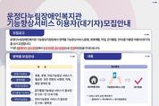 어웨이크뉴스 오경하 기자 | 파주시 운정다누림장애인복지관은 지역 내 장애인의 기능 향상과 일상생활 능력 증진을 위해 ‘기능향상서비스’참여자를 오는 23일부터 상시 모집한다. 모집 대상은 주민등록등본상 파주시에 거주하는 장애인으로, 서비스 영역별 특성에 따라 대상이 구분된다. 운동기능향상, 로봇재활, 작업기능향상 서비스는 모든 연령의 뇌병변·지체·발달장애인을 대상으로 하며, 감각통합기능향상은 2세부터 12세 아동, 언어기능 향상은 2세부터 학령기 중학생까지 신청할 수 있다. 기능향상서비스는 영역별 전문 재활 프로그램으로 구성되어 이용자의 특성과 욕구를 반영한 맞춤형 서비스를 제공한다. 주요 내용으로는 ▲운동기능향상(운동발달능력 향상 및 기능적 움직임 훈련) ▲로봇재활(보행기능 회복을 위한 맞춤형 보행훈련) ▲작업기능향상(일상생활활동 및 인지·상지 기능 훈련) ▲감각통합기능향상(감각조직화 및 적응반응 촉진) ▲언어기능향상(장애특성 및 주된 불편 증상을 고려한 의사소통 능력 향상) 등이 있다. 이용은 주 2회(회당 30분) 기준이며, 회당 9,000원~12,000원으로 서비스별 상이하다. 로봇재활은 6개월(최대 1년