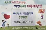 어웨이크뉴스 오경하 기자 | 지난 29일 세종대왕면 구양리에 거주하는 김영옥, (故)김건성께서 관내 어려운 이웃을 위한 성금 65만원을 세종대왕면 지역사회보장협의체에 기탁했다. 김영옥, (故)김건성께서는 주변의 저소득 가구를 위해 성금을 기부하여 지역사회에 따뜻한 마음을 전했다. 김영옥님은 “기부한 성금이 소외된 이웃들에게 조금이나마 도움이 되길 바라며 기회가 있을 때마다 지역사회에 도움이 되도록 함께 마음을 나누겠다.”고 전했다. 홍광래 세종대왕면장은 “어려운 이웃을 위해 따뜻한 마음을 전해준 김영옥님에게 감사의 마음을 전하며 기부 해주신 성금은 어려운 이웃을 위해 잘 사용하겠다.”고 전했다.