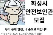 어웨이크뉴스 오경하 기자 | 화성특례시는 지역 내 안전문화 확산과 생활 속 위험요소의 사전 발굴·제거를 위해 안전보안관 145명을 공개 모집한다고 23일 밝혔다. 모집 기간은 3월 23일부터 4월 6일까지며, 공고일 기준 주민등록상 화성시에 거주하는 시민이면 누구나 지원할 수 있다. 안전보안관의 주요 활동은 ▲안전신문고 앱을 활용한 7대 안전무시 관행 및 생활 속 안전위반 행위 신고 ▲지역행사 및 축제 안전점검 지원 ▲안전문화 캠페인 참여 등이다. 안전보안관은 위촉일로부터 2년간 활동하며, 제안사항이 수용될 경우 ‘1365 자원봉사포털’을 통해 봉사시간을 인정받는다. 참여를 희망하는 시민은 화성시청 홈페이지 ‘시정알림방’ 게시판에서 ‘안전보안관’을 검색해 신청서를 내려받아 작성 후 안전정책과 안전문화교육팀 전자우편으로 제출하면 된다. 김영준 안전정책과장은 “시민이 직접 참여하는 안전관리 체계는 지역 안전 수준을 높이는 중요한 기반”이라며 “일상 속 위험요소를 세심하게 살피고 개선해 나가는 활동을 통해 보다 촘촘한 안전환경을 조성해 나가겠다”고 말했다.