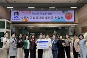 어웨이크뉴스 오경하 기자 | 수원시여성리더회가 16일 수원시청 본관 1층에서 저소득가정을 위한 후원금 300만 원을 수원시에 전달했다. 후원금은 형편이 어려운 가정에 지원할 예정이다. 전달식에는 김은주 수원시 여성가족국장, 김수민 수원시여성리더회 총회장 등이 참석했다. 김수민 총회장은 “우리 여성리더회 임원진과 회원들의 따뜻한 마음을 모았다”며 “형편이 어려운 가정에 그 마음이 잘 전달되길 바란다”고 말했다. 수원시여성리더회는 수원시 양성평등기금 사업으로 운영되는 ‘수원시 여성지도자대학’ 수료생들로 구성된 단체다. 여성의 권익 증진과 복지 향상, 지역사회 발전을 목표로 2004년 12월 출범했다. 수료생 1240명이 활동 중이며, 매년 저소득가정 후원금과 물품 기부, 한부모가정 지원, 지역 복지시설 봉사활동 등 다양한 사회공헌 활동을 하고 있다.