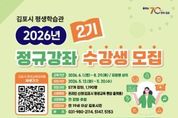 어웨이크뉴스 오경하 기자 | 김포시가 시민의 평생학습 참여 기회를 확대하고 변화하는 사회 환경에 대응할 수 있는 역량 강화를 위해 ‘2026년 2기 평생교육 정규강좌’ 수강생을 모집한다고 밝혔다. 이번 교육은 평생학습관 57개 강좌(1,190명), 읍면동 가까이배움터 217개 강좌(3,931명) 등 총 274개 강좌, 5,121명 규모로 운영된다. 평생학습관은 자격증·인문교양·디지털 등 전문성과 체계성을 갖춘 심화과정 중심으로 운영되며, 가까이배움터는 시민참여 생활기술, 건강·힐링, 기초문해 등 생활 밀착형 프로그램을 중심으로 구성되어 시민 누구나 가까운 곳에서 쉽게 학습할 수 있도록 했다. 수강 신청은 김포시 평생교육 통합플랫폼을 통한 온라인 접수로 진행되며, 모든 강좌는 추첨제를 통해 수강생을 선발한다. 모집기간은 2026년 5월 12일부터 5월 20일 17:00까지 접수되며, 추첨은 5월 21일 진행된다. 이후 5월 22일부터 5월 26일까지 온라인 결제를 완료해야 수강이 확정된다. 수강료는 12주 기준 36,000원이며, 비대면 강좌와 기초문해 과정은 무료로 운영된다. 교육은 2026년 6월 1일부터 8월 29일까지