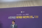 ▲신상진 성남시장이 4월 14일 시청 모란관에서 ‘시민 체감 재개발·재건축 2조원 지원’ 기자회견을 열고 있다.(=오경하 기자) 어웨이크뉴스 오경하 기자 | 성남시는 14일 재개발·재건축 사업에 총 2조원을 투입하는 ‘시민 체감 재개발·재건축 지원 정책’을 본격 추진한다고 밝혔다. 이번 정책은 ‘노후계획도시정비 및 지원에 관한 특별법’이 2026년 2월 개정되고 오는 8월 시행됨에 따라 분당 지역까지 제도적 지원이 확대되는 데 맞춰 마련된 것으로, 기존 수정·중원 지역에 이어 분당까지 지원 범위가 넓어지면서 성남시 전역에서 정비사업이 보다 체계적으로 추진될 전망이다. 신상진 성남시장은 이날 오전 시청 모란관에서 기자회견을 열고 “정비사업은 단순한 건설공사가 아니라 시민의 삶의 질을 바꾸고 도시의 미래를 결정하는 핵심 정책”이라며 “이에 성남시는 2조원 규모의 재정을 투입하여, 시민 여러분의 부담을 덜고 보다 안정적으로 정비사업에 참여할 수 있도록 문턱을 낮추겠다”고 밝혔다. 시는 그동안의 지원 사례를 바탕으로 2040년까지의 사업 수요를 반영해 총 2조원 규모의 재정을 단계적으로 투입하고, 시민 부담을 줄이는 데 정책의 초점을 맞출 계획이다. 첫째, 기반시설