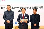 어웨이크뉴스 오경하 기자 | 이현재 하남시장은 17일 “10년 공공임대아파트에 거주하는 무주택 서민들의 주거 안정을 위해 공공임대아파트의 분양전환가 산정기준을 5년 공공임대아파트와 동일한 수준으로 변화될 수 있도록 국토교통부에 제도 개선을 요청했다”고 밝혔다. 이현재 시장은 이날 시청 상황실에서 진행된 기자회견을 통해 “10년 공공임대아파트의 분양전환가 산정기준이 5년 공공임대아파트 보다 매우 불리하게 되어있어 무주택 서민들의 내 집 마련 꿈을 산산이 조각내고 있다”며 이같이 말했다. 문제의 핵심은 10년 임대와 5년 임대주택 간의 ‘분양전환가격 산정 방식’에 있다. 현재 10년 공공임대주택은 분양전환가격이 ‘현재 시세’인 감정평가금액을 넘지 못하도록만 되어 있다. 즉, 최근 몇 년간 폭등한 부동산 시세가 사실상 그대로 분양전환가격이 되는 구조다. 반면, 5년 공공임대주택은 ‘최초의 건설원가’와 ‘현재 시세(감정평가금액)’를 더한 뒤 2로 나눈(산술평균한) 금액으로 분양전환가격이 책정된다. 쉽게 말해, 5년 임대 입주자는 최초의 저렴했던 ‘원가’ 혜택을 절반이라도 받지만, 10년 임대 입주자는 그 혜택 없이 1