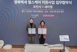 어웨이크뉴스 오경하 기자 | 과천시는 28일 시청 본관 1층에서 헬스케어 전문기업 ㈜세라젬과 ‘행복백세 헬스케어 지원사업’ 업무협약을 체결하고, 시민들이 일상 속에서 쉽고 편리하게 건강을 관리할 수 있는 환경 조성에 나선다고 밝혔다. 이번 사업은 세라젬의 공공기여를 통해 약 5억 2천만 원 규모의 헬스케어 장비를 관내 복지시설과 어린이집에 무상 지원하는 것으로, 과천시가 민간기업과의 협력을 바탕으로 추진하는 것이다. 협약식에는 신계용 과천시장과 김풍기 세라젬 상품제조부문장 등 관계자, 대한노인회 과천시지회, 과천시어린이집연합회 등 관련 단체장이 참석했다. 협약에 따라 시와 세라젬은 앞으로 5년간 ‘행복백세 헬스케어 지원사업’을 함께 운영한다. 세라젬은 과천지식정보타운 4-3블록 입주기업으로, 용지매매계약 체결 시 약속한 공공기여를 이번 사업을 통해 지역사회에 실질적인 도움이 되는 복지사업으로 환원한다. 과천시는 장비 설치와 운영이 원활히 이루어지도록 행정 지원을 맡는다. 세라젬은 척추 관리 의료기기 41대, 안마가전 4대, 로봇청소기 109대, 디지털 건강 측정기기 38세트를 노인복지관, 경로당,
