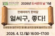 어웨이크뉴스 오경하 기자 | 김포시 마산도서관은 제4회 도서관의 날을 맞아 오는 4월 12일 오후 4시부터 5시까지 마산도서관 3층 다목적실에서 전래이야기 한마당 '얼씨구, 좋다!'를 운영한다. 4월 12일은 '도서관법'에 따라 도서관에 대한 국민의 이해와 관심을 높이고 이용을 촉진하기 위해 지정된 ‘도서관의 날’이다. 시는 이를 기념해 가족 단위의 관람객이 즐길 수 있는 공연을 마련했다. 공연은 밴드 ‘판’이 진행하며, 건반과 베이스, 기타, 장구 등 다양한 악기를 활용해 전래동화를 음악으로 재구성한 무대다. 혹부리 영감, 별주부전 등 친숙한 이야기를 노래와 연주로 풀어내며, 옛 동요와 국악 장단을 활용한 창작곡도 함께 선보일 예정이다. 이번 공연은 김포시민 100명을 대상으로 하며, 3월 24일 오전 10시부터 김포시 통합예약 홈페이지를 통해 신청할 수 있다.