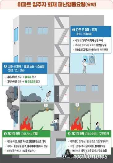 어웨이크뉴스 오경하 기자 | 아파트 화재 시 입주민에 대한 피난 안전을 강화하기 위해 ‘아파트 화재 피난안전대책 개선방안’을 알리고자 한다.
