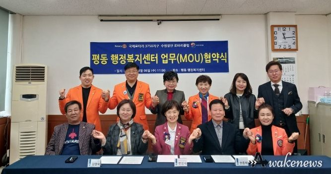 어웨이크뉴스 오경하 기자 | 권선구 평동 행정복지센터와 평동 지역사회보장협의체는 지난 6일, 수원장안 로타리클럽과 업무협약을 체결했다.
