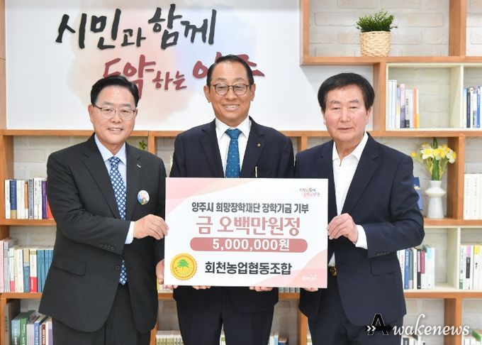 어웨이크뉴스 오경하 기자 | 양주시희망장학재단은 29일 오전 회천농업협동조합에서 장학기금 500만원을 기탁했다고 밝혔다.