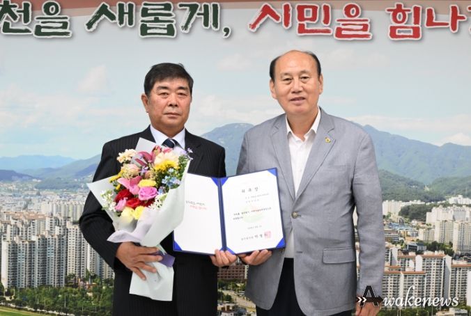 어웨이크뉴스 오경하 기자 | 동두천시는 4일, 시청 시장실에서 동두천시 지역자율방재단장에 박용호 단장을 위촉하고 위촉장을 전달했다.