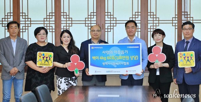 어웨이크뉴스 오경하 기자 | 평택시사회복지사협회는 지난 5일 백미 240kg를 평택행복나눔본부에 전달했다.