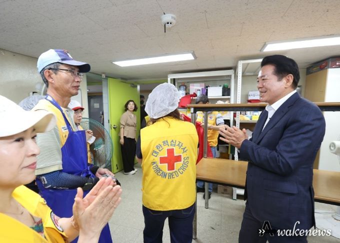 어웨이크뉴스 오경하 기자 | 최대호 안양시장이 19일 대한적십자사 봉사회 안양지구협의회(회장 이점숙)가 주관하는 ‘사랑의 여름김치 나눔행사’에 참석해 봉사자들을 격려하고 감사의 말을 전했다.