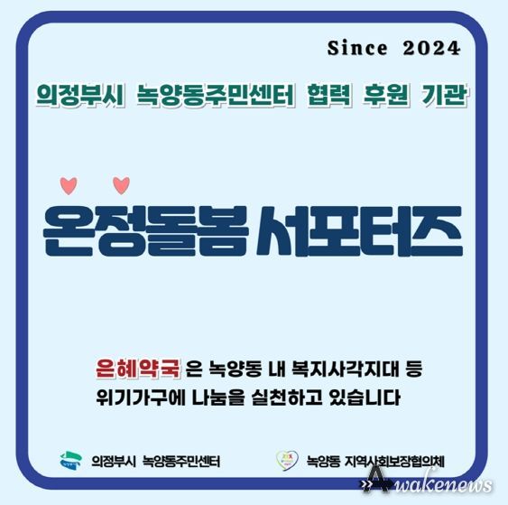 어웨이크뉴스 오경하 기자 | 의정부시 녹양동주민센터는 은혜약국과 ‘녹양 온정돌봄 서포터즈(착한 업소) 업무협약’을 체결했다고 4일 밝혔다.
