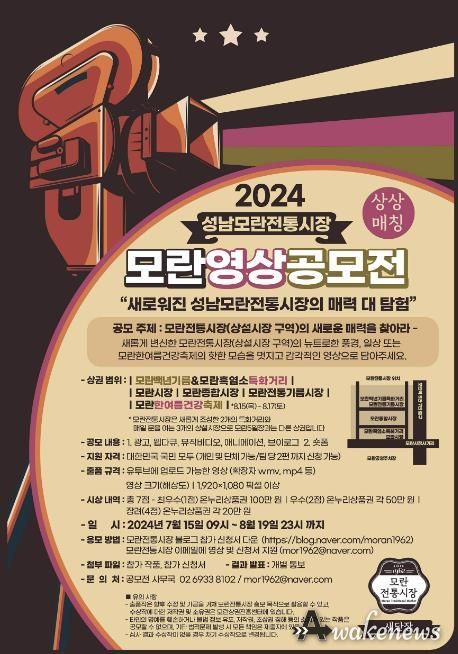 어웨이크뉴스 오경하 기자 | 성남시가 관내 대표 전통시장인 모란전통시장의 새 단장을 기념해 영상 공모전을 개최한다.