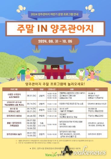 어웨이크뉴스 오경하 기자 | 양주시는 오는 31일부터 10월 6일까지 공연과 체험 및 놀이로 구성된 프로그램 ‘주말 IN 양주관아지’를 운영한다고 8일 밝혔다.