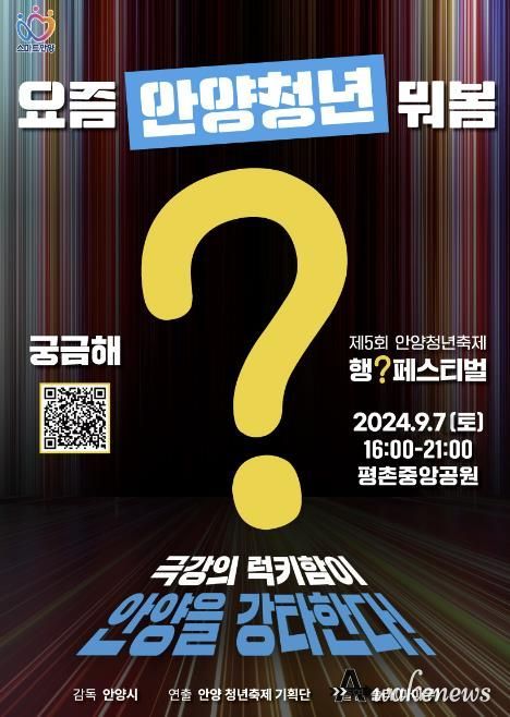 제5회 안양청년축제가 오는 9월 7일 오후 4시부터 9시까지 평촌중앙공원 일대에서 개최된다.