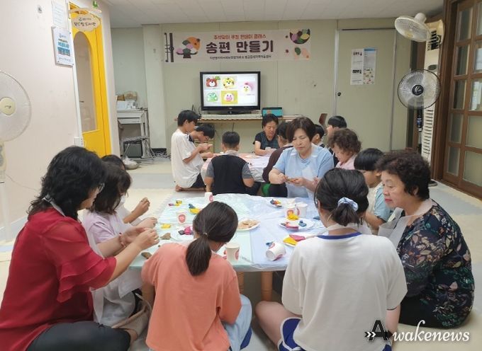 어웨이크뉴스 오경하 기자 | 평택시 지산동 지역사회보장협의체가 지난 11일 하반기 특화사업의 하나인 지역아동센터 아동들과 함께 ‘원데이클래스 송편만들기’에 참여했다.