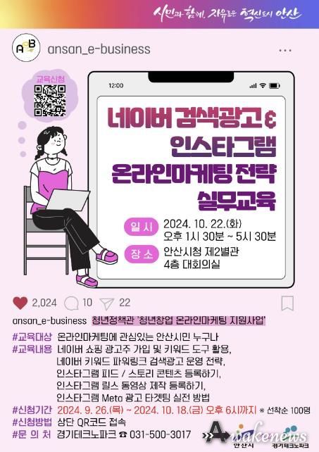 어웨이크뉴스 오경하 기자 | 안산시는 26일부터 오는 10월 18일까지 온라인 마케팅 전략 실무교육 수강생을 모집한다고 26일 밝혔다.