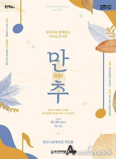 어웨이크뉴스 오경하 기자 | 용인문화재단은 오는 10월 30일에 용인시문예회관에서 기획공연 장사익과 함께하는 이브닝 콘서트 ‘만추’를 개최한다.