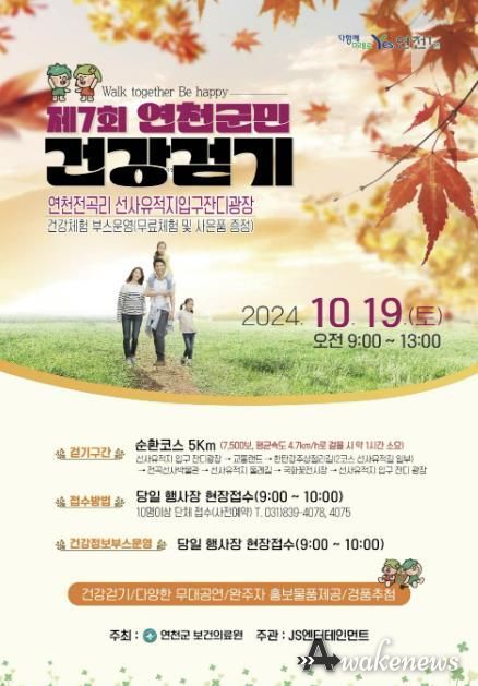 어웨이크뉴스 오경하 기자 | 연천군보건의료원은 오는 19일 전곡리유적에서 제7회 연천군민 건강걷기 행사를 개최한다고 밝혔다.