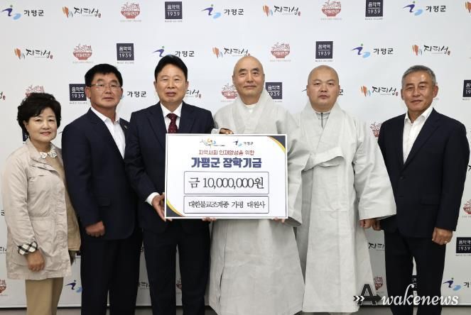 지난 16일 대한불교조계종 대원사 주지 선용 스님이 가평군청을 방문해 가평군에 장학금 1,000만원을 전달했다. 선용 스님은 “학생들이 학업에 전념해 지역의 우수한 인재로 성장하는 데 도움이 되길 바란다”고 밝혔다.