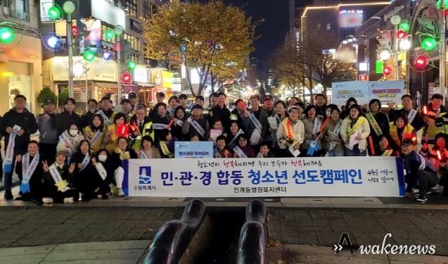 어웨이크뉴스 오경하 기자 | 수원시 팔달구 인계동은 지난 14일 저녁 민·관·경 합동 청소년 유해환경 점검 단속 활동을 진행했다. 이번 활동은 수능일을 맞아 청소년과 수험생의 일탈을 유혹하는 유해환경 차단을 위해 실시되었다.