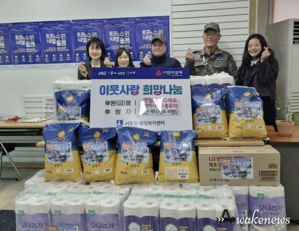 어웨이크뉴스 오경하 기자 | 공군제10전투비행단은 지난 13일 군소음 영향지역인 수원시 권선구 서둔동에 식료품 및 생필품을 전달하는 ‘지역주민 나눔 행사’를 개최했다. 이번 나눔 행사에는 군소음 영향지역에 사는 서둔동의 어려운 이웃을 위해 백미 10kg 10포, 세제 20개, 롤휴지 20개가 전달됐다.