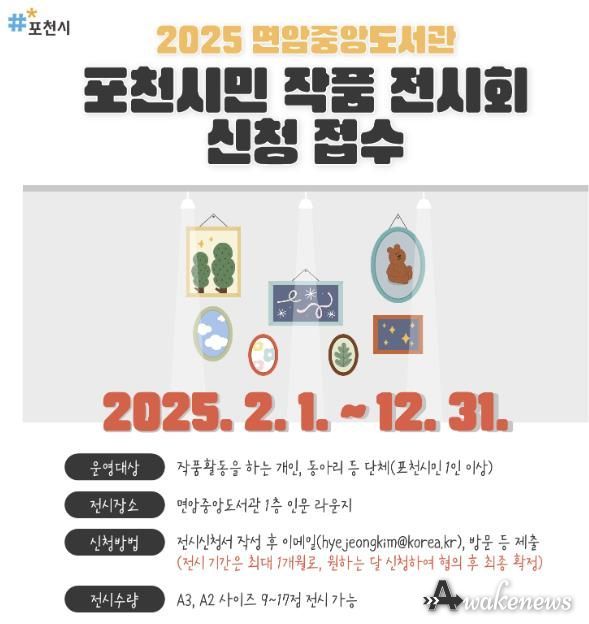 어웨이크뉴스 오경하 기자 | 포천시는 면암중앙도서관 1층 라운지 전시 공간에서 지역 문화예술 활성화를 위해 다양한 시민 작가의 작품을 선보일 예정이다.