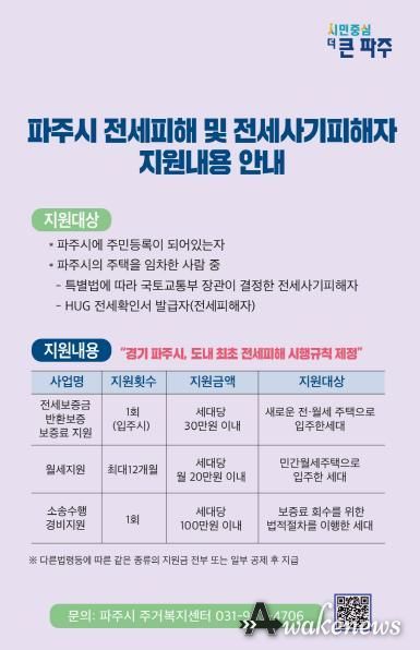 어웨이크뉴스 오경하 기자 | 파주시가 전세사기피해자의 주거안정을 위해 지난해에 이어 올해도 피해자 지원사업을 실시한다.
