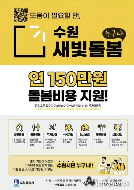 수원시 관계자는 “재탄생한 ‘수원새빛돌봄(누구나)’으로 더 촘촘한 사회안전망을 구축하고, 맞춤형 복지 시스템을 실현할 것”이라며 “시민 삶에 힘이 되는 돌봄도시 수원을 구축하기 위해 최선을 다하겠다”고 말했다.