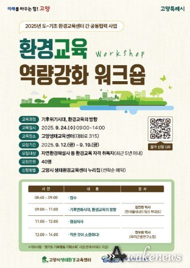 어웨이크뉴스 오경하 기자 | 고양특례시는 오는 24일, 도-기초 환경교육센터 간 협력 사업의 일환으로‘환경교육 역량강화 워크숍’을 개최한다고 16일 밝혔다.