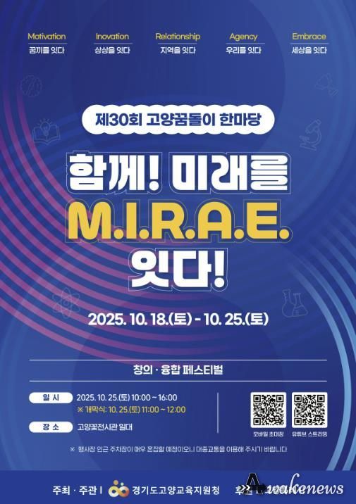 이현숙 교육장은 “고양꿈돌이 한마당은 지난 30년간 학생, 학부모, 교사, 지역사회가 함께 만들어온 고양 대표 교육 축제”라며 “앞으로도 학생들의 꿈꾸고 도전하는 리더로서 자기주도성과 혁신적 상상력, 나아가 세상을 향한 포용성을 키워가는 장이 되길 바란다”고 말했다.