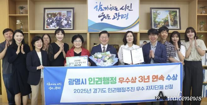어웨이크뉴스 오경하 기자 | 광명시가 경기도가 선정하는 인권 행정추진 우수 기관으로 3년 연속 선정되며 인권 선도 도시로 확고히 자리매김했다.