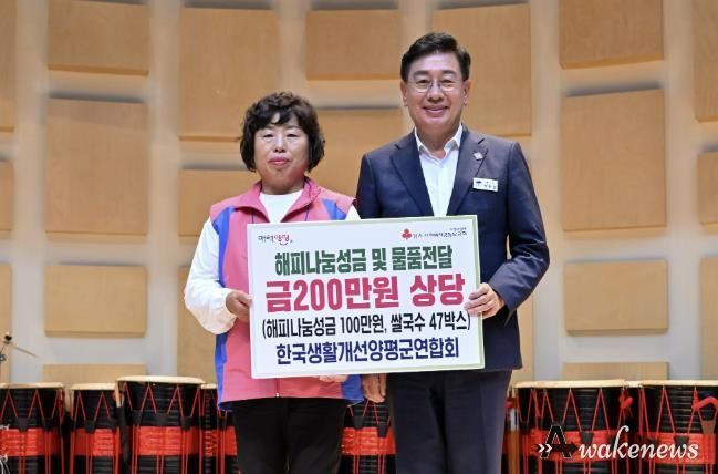어웨이크뉴스 오경하 기자 | 한국생활개선양평군연합회는 지난 9월 30일부터 10월 1일까지 강릉 한국여성수련원에서 열린 ‘2025년 생활개선양평군연합회 한마음대회’에서 쌀국수 47박스와 현금 100만 원, 총 200만 원 상당의 해피나눔성금을 기탁했다고 밝혔다.