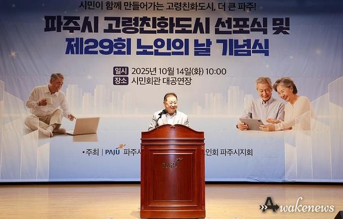 어웨이크뉴스 오경하 기자 | 파주시는 지난 14일 파주시민회관 대공연장에서 ‘제29회 노인의 날 기념행사 및 세계보건기구(WHO) 인증 고령친화도시 선포식’을 성황리에 개최하고, 고령사회에 대응하는 파주시 복지정책 방향과 세대 간 공감의 문화를 확산하기 위한 뜻깊은 자리를 마련했다.