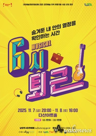 어웨이크뉴스 오경하 기자 | 남양주시는 오는 11월 7일부터 8일까지 다산아트홀에서 뮤지컬‘6시 퇴근’을 공연한다고 밝혔다.
