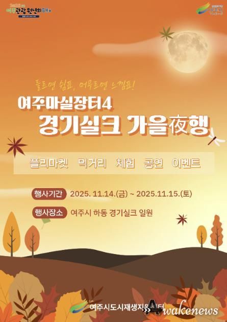 어웨이크뉴스 오경하 기자 | 여주시는 오는 11월 14일, 15일, 이틀간 경기실크 일대에서 ‘여주마실장터4 가을야(夜)행’을 개최한다.