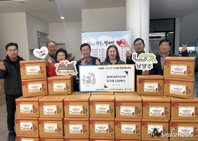 어웨이크뉴스 오경하 기자 | 남양주시는 28일 별내면 농촌지도자회가 직접 재배·수확한 고구마 150박스(6kg 단위)를 별내면에 기탁했다고 밝혔다.