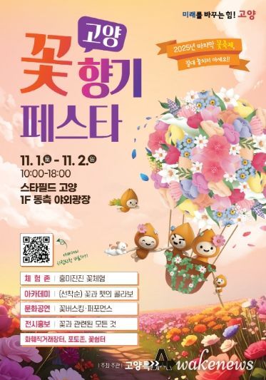 어웨이크뉴스 오경하 기자 | 고양특례시는 오는 11월 1일과 11월 2일, 오전 10시부터 오후 6시까지, 스타필드 고양 1층 동측 야외광장에서 2025년 마지막 꽃축제인 ‘고양 꽃향기 페스타’를 개최한다고 밝혔다.