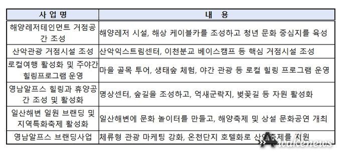 울산은 ‘일산해수욕장’ 등 해양자원과 ‘영남알프스’ 산악자원을 연계하여 ‘하루 더 머무는 체류형 복합레저도시’ 조성을 목표로 한다. 이를 통해, 제조업 중심의 산업구조를 고용친화적 관광산업으로 다변화하여 지역경제 활성화를 도모한다.
