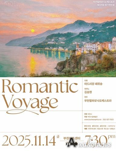 어웨이크뉴스 오경하 기자 | 부천필하모닉오케스트라가 오는 11월 14일 오후 7시 30분 부천아트센터 콘서트홀에서 제331회 정기연주회 'Romantic Voyage'를 개최한다. 공연에는 상임지휘자 아드리앙 페뤼숑과 부천필이 무대에 오르며, 협연자로는 탁월한 음악적 이해력과 구성력으로 호평받는 피아니스트 김송현이 ‘낭만적 여정’에 함께 오른다.