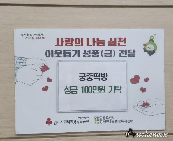 어웨이크뉴스 오경하 기자 | 동두천시 생연2동 궁중떡방은 겨울철 취약계층의 생활 안정을 위해 사용해 달라며 성금 100만 원을 기부했다.