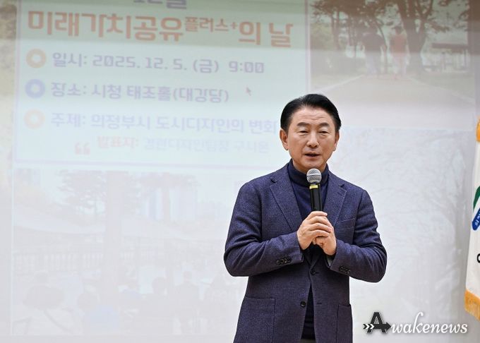 어웨이크뉴스 오경하 기자 | 의정부시는 12월 5일 시청 태조홀에서 시민과 직원 150여 명이 참석한 가운데 ‘2025년 12월 미래가치 공유플러스+의 날’을 열고 ‘디자인 도시’에 대한 비전을 공유했다.
