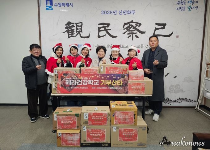 어웨이크뉴스 오경하 기자 | 수원시 권선구 헤라건강학교는 기부산타 나눔 활동의 일환으로 취약계층을 위해 식품 14박스를 기부했다. 이번 후원물품은 지역 내 저소득 위기가구 14 가구에 전달되어 따뜻한 연말 분위기 속에서 실질적인 생활 지원에 활용될 예정이다.