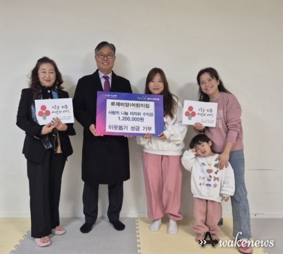 어웨이크뉴스 오경하 기자 | 지로제비앙i어린이집이 지난 5일 양주시 회천2동 행정복지센터에 ‘사랑의 나눔 바자회’를 통해 마련한 수익금 120만 원을 기부했다.